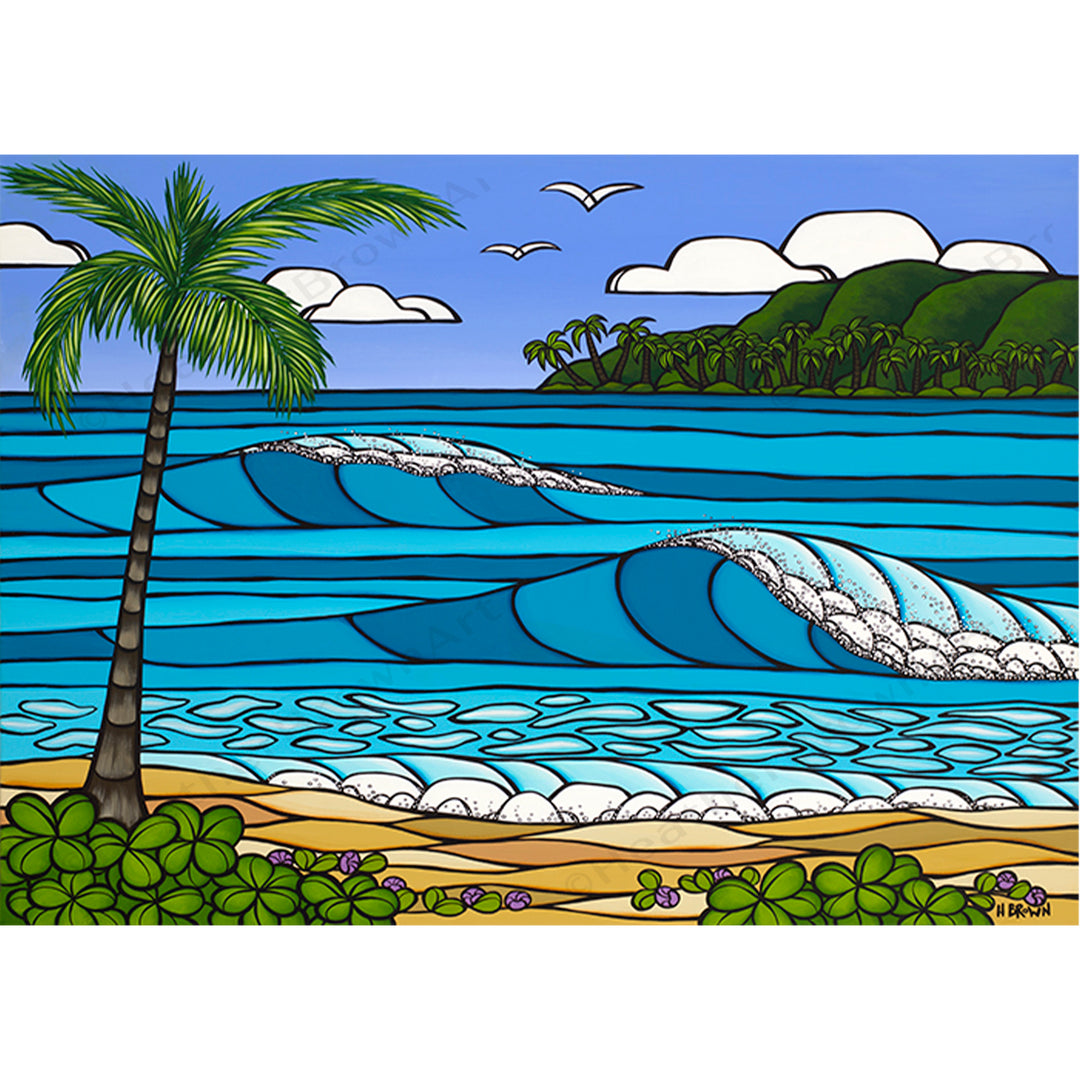 Immerse yourself in the vibrant world of Heather Brown! Heather's affordable collection of matted prints captures the essence of Hawaii's breathtaking beaches, surf breaks, plants, waterfalls, rainbows, and more. Heather's artwork brings the joy and aloha spirit of the islands right into your home, with her bright colors and iconic style.