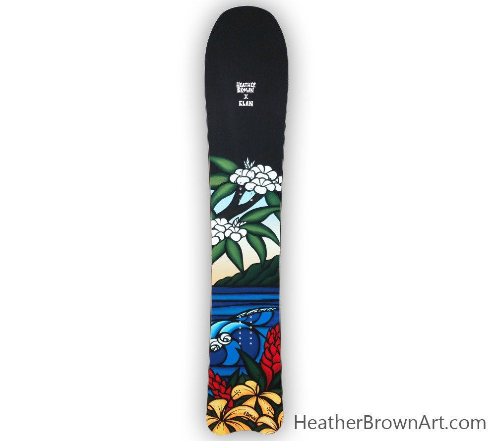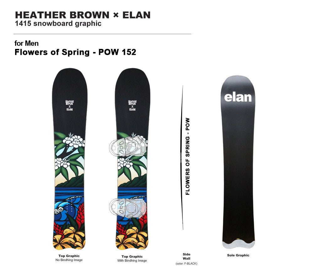 「FlowersofSpring-POW」限定版スノーボードは、2014年から2015年のシーズンに向けてHeather Brown Art x ElanSnowboardsと共同で作成されました。貿易によるサーフアーティストであるヘザーブラウンは、彼女の芸術を山に持ち込み、そこで彼女は彼女のお気に入りのスポーツであるサーフィンとスノーボードへの新しい情熱との類似点を見つけました。ヘザーブラウンのスノーボードアートは、コロラド州テルライドで過ごした冬に触発されました。