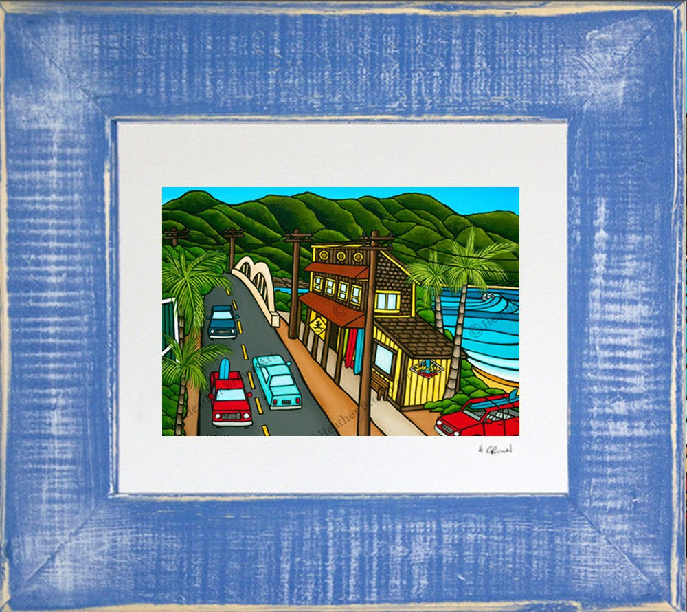 "Surf N Sea" - Matted Print by Heather Brown featuring a classic view of the famous North Shore store.