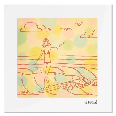 Matted Art Print by Hawaii Surf Artist Heather Brown featuring a Female surfer in an abstract cosmic world